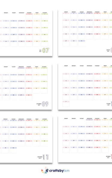 2021 monthly calendar